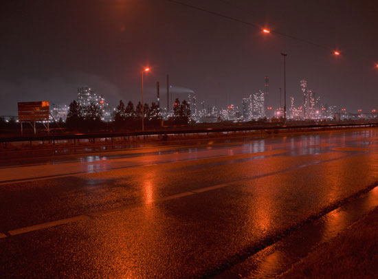 Night Town Series was shot from the motorway on an industrial estate (made up of oil refineries) outside Rotterdam.