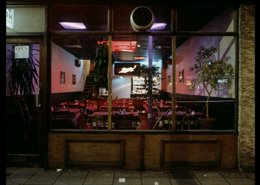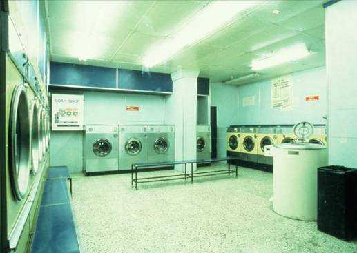 Like Atget who photographed a changing Paris at the turn of the last century, Lee is interested in documenting spaces around Camberwell before they change and are redeveloped. There are no people in any of these photos which creates a sense of absence for the viewer to fill, like the empty places with neatly folded napkins on the tables in The Grosvenor Steakhouse or the empty washing machines in Launderette.